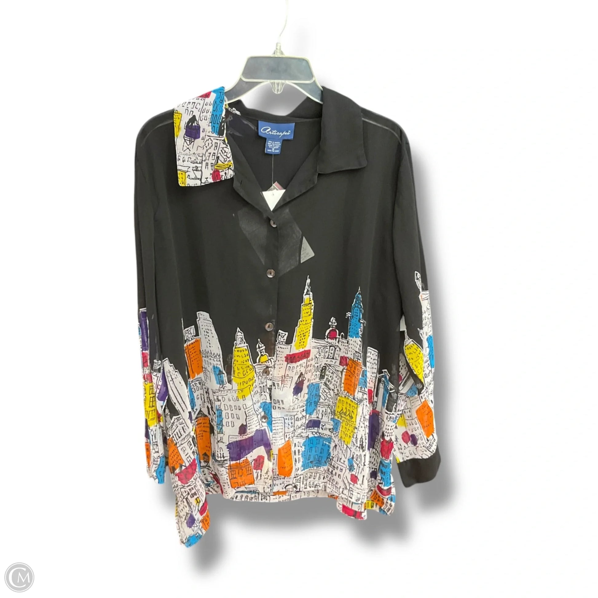 Artscapes Long Sleeve Blouse in vibrant multi-color, size 1x. Soft fabric, flattering fit, and eye-catching design for confident style.